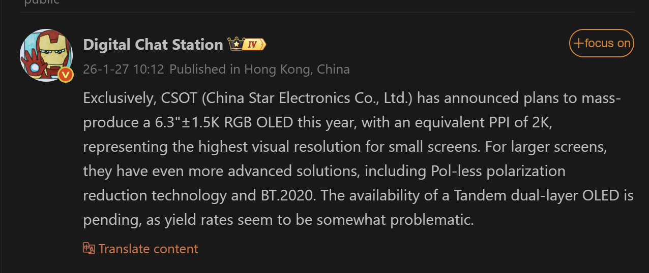 Der Leak hat sich nicht auf die Auflösung beschränkt. Es wurde erwähnt, dass CSOT für größere Bildschirme die Pol-less (Polarizer-less) Technologie einsetzt. Diese ermöglicht dünnere Bildschirme und einen deutlich geringeren Stromverbrauch – ein großer Vorteil für die Akkulaufzeit.