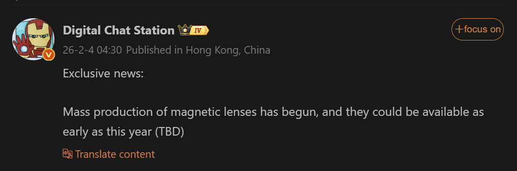 Der Leaker hat diese Information ausdrücklich mit „TBD“ (To Be Decided) gekennzeichnet. Während das Bauteil (die magnetische Linse) in die Massenproduktion geht, hängen der Zeitplan für die Markteinführung des Geräts und die endgültige Integration noch von Xiaomis strategischer Produkt-Roadmap ab.