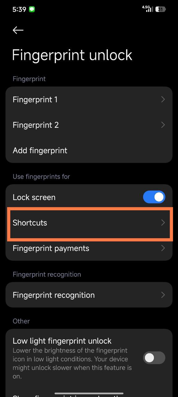Du findest diese Funktion, indem du in die Einstellungen deines Telefons navigierst und das Menü „Fingerabdruck entsperren“ auswählst. Suche dort nach der Option „Tastenkombinationen“ und schalte den Schalter auf „Ein“, um die Geste zu aktivieren.