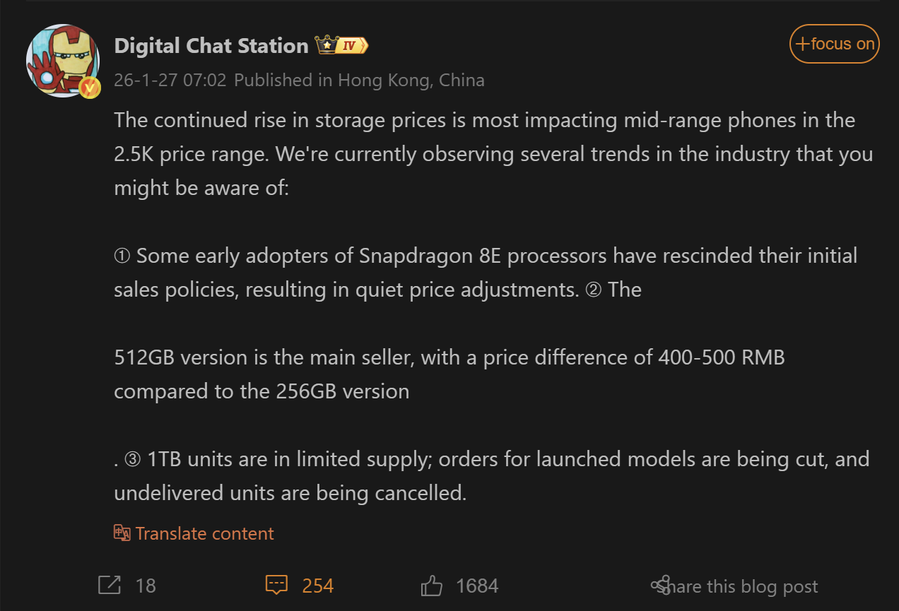 Offenbar müssen die Hersteller aufgrund der steigenden Speicherkosten einige harte Entscheidungen treffen, die beliebte Modelle wie das 350-Dollar-Mittelklassesegment (ca. 2.500 CNY) und Flaggschiffmodelle wie das Snapdragon 8 Elite betreffen. Es scheint, als ob das „Goldene Zeitalter“ des erschwinglichen Speichers hinter uns liegt und die Hersteller nun im Stillen daran arbeiten, dass ihre Gewinnspannen intakt bleiben.