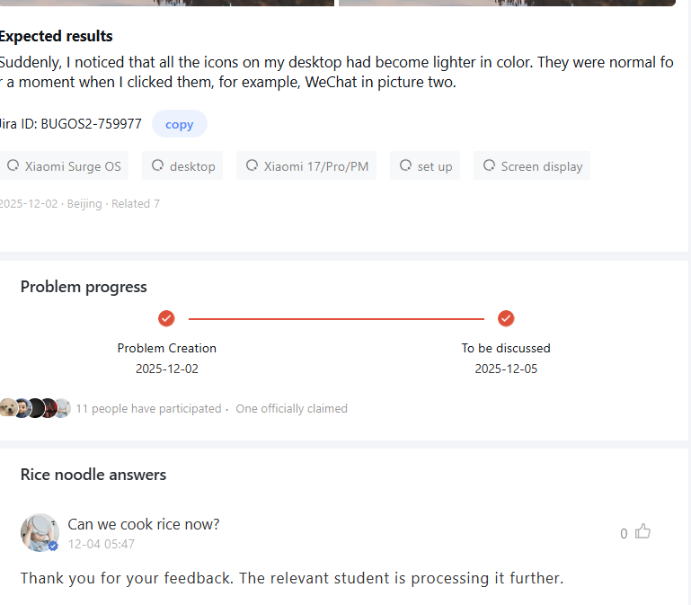 Xiaomi hat bestätigt, dass bei einigen Nutzern ein abnormales Verhalten des Startbildschirms auftrat. Das Problem führte dazu, dass die Icons vorübergehend ihre Farbe verloren, insbesondere wenn die Nutzer die Zurück-Taste drückten oder Apps schlossen. Andere Berichte fügten hinzu, dass einige Geräte am 25. Dezember vollständig transparente oder halbtransparente Icons auf dem gesamten Desktop anzeigten.