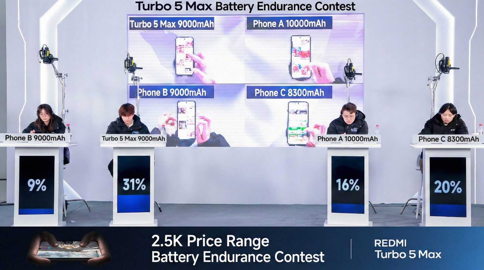 Die Tage der Akkusorgen könnten offiziell der Vergangenheit angehören, wenn es nach dem jüngsten Live-Stream-Event von Xiaomi geht. In einem aggressiven „Test bis zum Tod“-Livestream, der heute Morgen ausgestrahlt wurde, ließ das Unternehmen sein neues REDMI Turbo 5 Max gegen seinen Konkurrenten antreten, der einen wesentlich größeren Akku hat.
