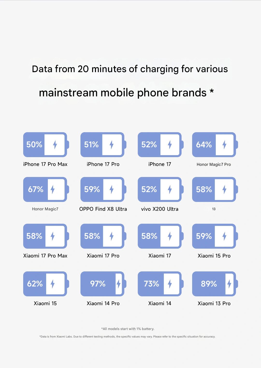 Neben der reinen Leistung ist die Vielseitigkeit ein wichtiger Bestandteil dieses neuen Zubehörs. Das Ladegerät unterstützt Xiaomis proprietäre Flash-Ladeprotokolle, die die besten Geschwindigkeiten für aktuelle Geräte wie das [Xiaomi 15] oder das [Redmi K80 Ultra] gewährleisten. Außerdem ist es vollständig kompatibel mit den wichtigsten Industriestandards wie QC2.0, QC3.0, PD3.0 und PPS. Diese breite Kompatibilität ermöglicht das sichere und schnelle Aufladen eines breiten Spektrums von elektronischen Geräten auf dem Markt, von Tablets bis hin zu Wearables.