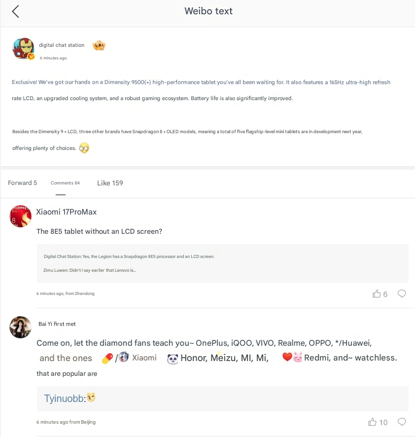 Aus dem Leak geht außerdem hervor, dass drei weitere Marken Mini-Tablets mit Snapdragon 8-Prozessoren und OLED-Displays vorbereiten werden. Diese Modelle sollen eine erstklassige visuelle Qualität und eine höhere Spitzenleistung bieten und den Verbrauchern mehrere Optionen auf Flaggschiff-Niveau mit verschiedenen Displaytechnologien zur Verfügung stellen.
