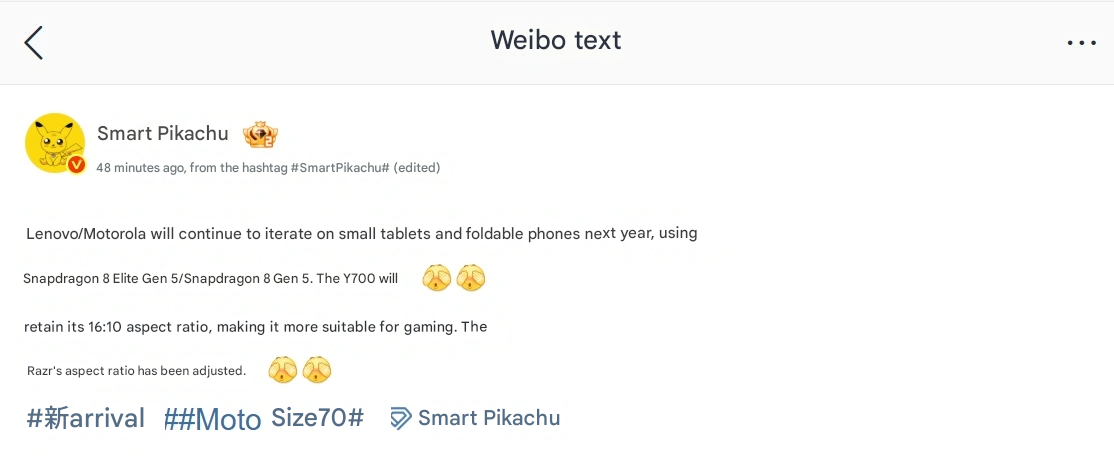 Am 14. November wurde bekannt, dass Lenovo und Motorola ihre Arbeit an kleinen Tablets und kompakten faltbaren Geräten im Jahr 2025 fortsetzen wollen. Das neue Y700 (next-gen) soll den Snapdragon 8 Ultra Chip verwenden, aber das 16:10 Seitenverhältnis beibehalten, ein Format, das von Spielern wegen seines komfortablen Sichtfelds bevorzugt wird.